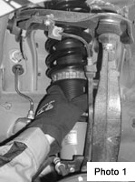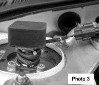Please unplug the cable connectors of the EDFC motors, before changing your ride height with full-length adjustable dampers. Adjusting height requires releasing the damper's bracket lock and turning its shell case (Photo 1). Since the EDFC motor rotates along, if its cable is connected (Photo 2) it will wind around the motor and/or shock absorber top and break (Photo 3).