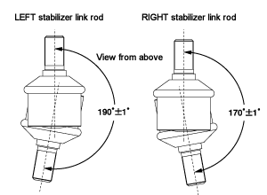 Depending on the vehicle, stabilizer link rods for the left and right side may differ. The diagram shows how in the Honda Fit GD1 they have different installation angles. This also occurs in e.g. Honda Mobilio GB1, Mazda Axela BK3P and Demio DY5W, and Toyota Celica ZZT231.