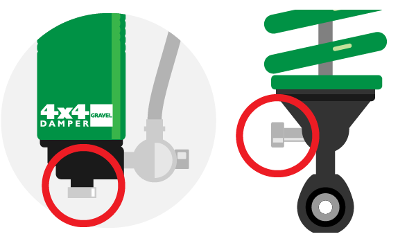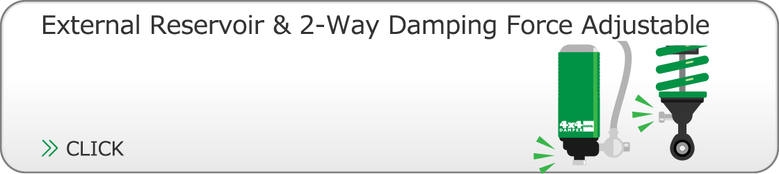 4x4 DAMPER GRAVEL 1 is also designed for and configured to be most suitable for the lifted height. Instead of simply raising the standard height, which can lead to insufficient stroke imparing the stability, 4x4 DAMPER GRAVEL 1 is tested on each vehicle models to optimize the dimensions and settings, in order to ensure sufficient strokes and to enable the best suitable alignment.