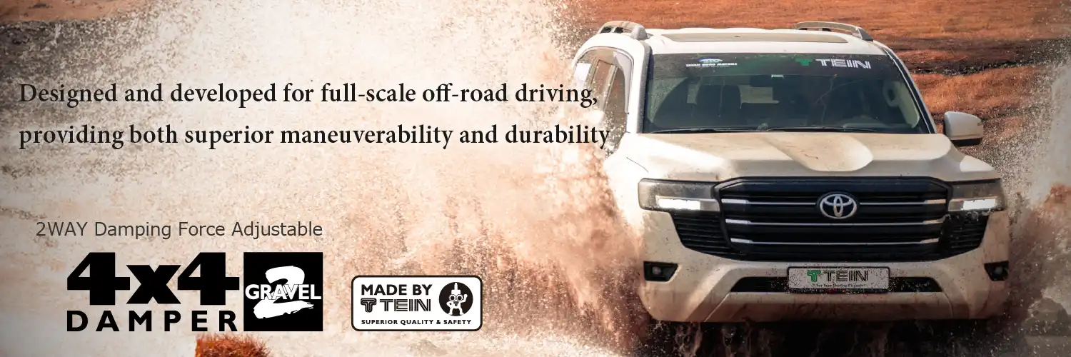 4x4 DAMPER GRAVEL 2, equipped with HRBS, internally converts the impact of the stroke to thermal energy (heat) and absorb it, greatly reducing the impact that disturbs the vehicle's behavior. With less damage to shock absorbers, HRBS also contributes to superior durability.