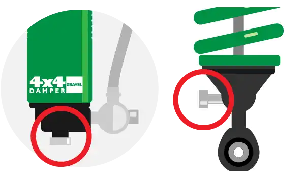 4x4 DAMPER GRAVEL 2 is also designed for and configured to be most suitable for the lifted height. Instead of simply raising the standard height, which can lead to insufficient stroke imparing the stability, 4x4 DAMPER GRAVEL 2 is tested on each vehicle models to optimize the dimensions and settings, in order to ensure sufficient strokes and to enable the best suitable alignment.
