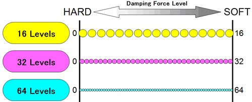 | Damping force is adjusted linearly according to the preset speed, automatically supplementing the values in between, for smoother & more gradual change. |