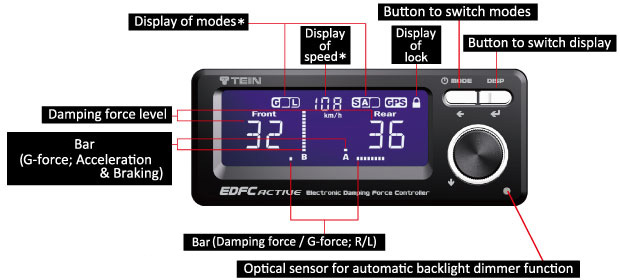 - EDFC ACTIVE offers lots of extra features including adjustable display color and G-force display. In addition, with optional GPS kit installed, vehicle speed, altitude, longitude, latitude, trip meter and/or clock can be displayed.
