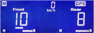 | In addition to the usual damping force display (with G-force bar on/off), G-force (numerical values & bar) can be shown. With the optional GPS kit, vehicle speed, altitude, longitude, latitude, trip meter and clock can be displayed. |