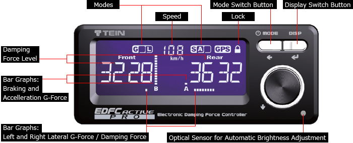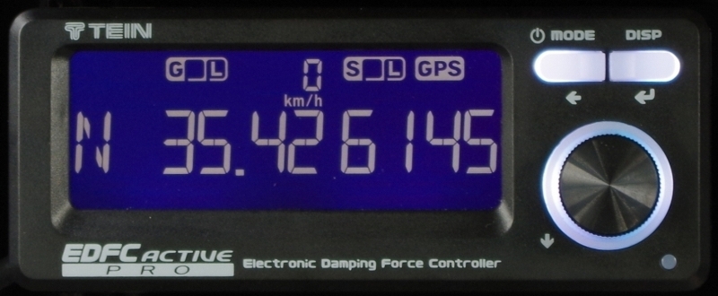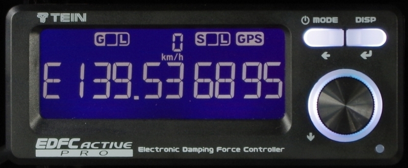 Other than its default Damping Force Level Display, the EDFC screen switches to G-Force Display (numerical as well as graphic) and Speedometer Display. In addition, the optional GPS kit enables a further array of display modes: Altitude, Longitude, Latitude, Tripmeter and Clock.