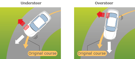 Understeer: front wheels skid sideways at fast bend