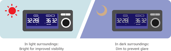 You can set the basic light level manually (3 levels), and brightness auto-adjustment fine-tunes it for optimal visibility. The auto-adjustment function can be switched on/off.