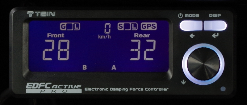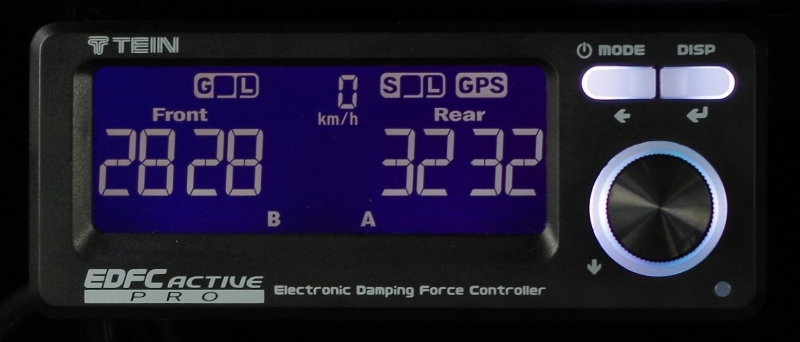 You can specify a minimum vehicle speed, at which to start accel/deceleration- and cornering-reactive automatic damping force adjustment. This is convenient if you don't need it when you drive slowly, or if you mind the sound of the EDFC motors. The start speed can be set between 0 and 50 km/h (or 0 to 50 mph); under that speed g-force-reactive auto-adjustment will be off.