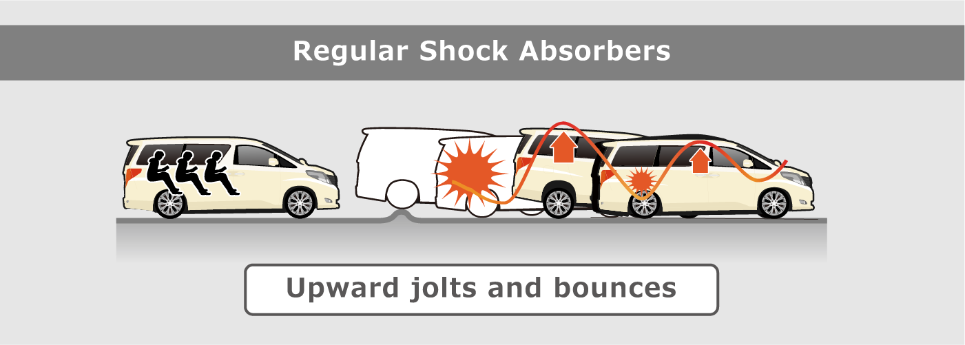 When regular shock absorbers fully stroke, their bump rubbers are compressed. The energy that is generated by that escapes as a repulsive force, which can disturb the vehicle's behavior. Furthermore, repeated full strokes can damage the damper.