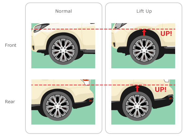 Simply raising the standard height can lead to insufficient rebound stroke impairing the stability and also make the camber angle positive on strut suspensions. EnduraPro HC PLUS is tested on each vehicle models to optimize the dimensions and settings, in order to secure sufficient strokes and to enable the best suited alignment.