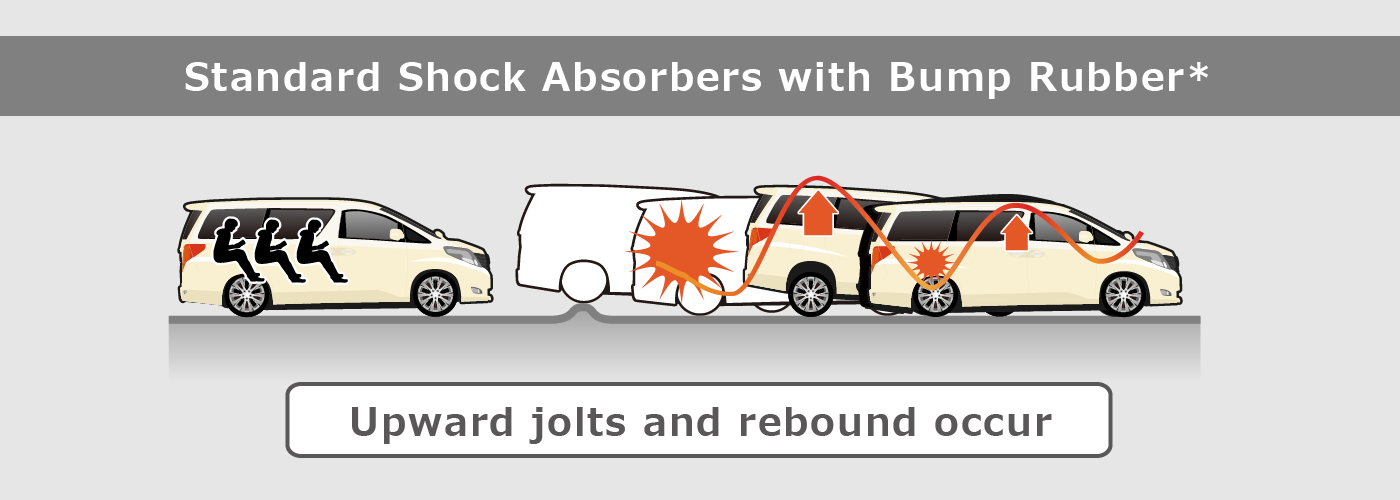 In regular shock absorbers, bump rubber is vital to avoid damage from bottoming out. Unfortunately it causes instability, because when a large impact compresses it, energy thus amassed is released upwards.