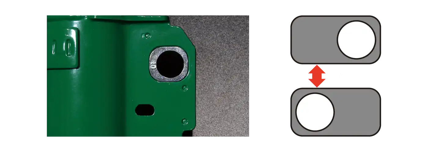 For some vehicle models with insert-type struts, eccentric sleeves are used to enable camber angle adjustments. By rotating the sleeves, camber angle can be adjusted to either negative or positive, from the standard position.