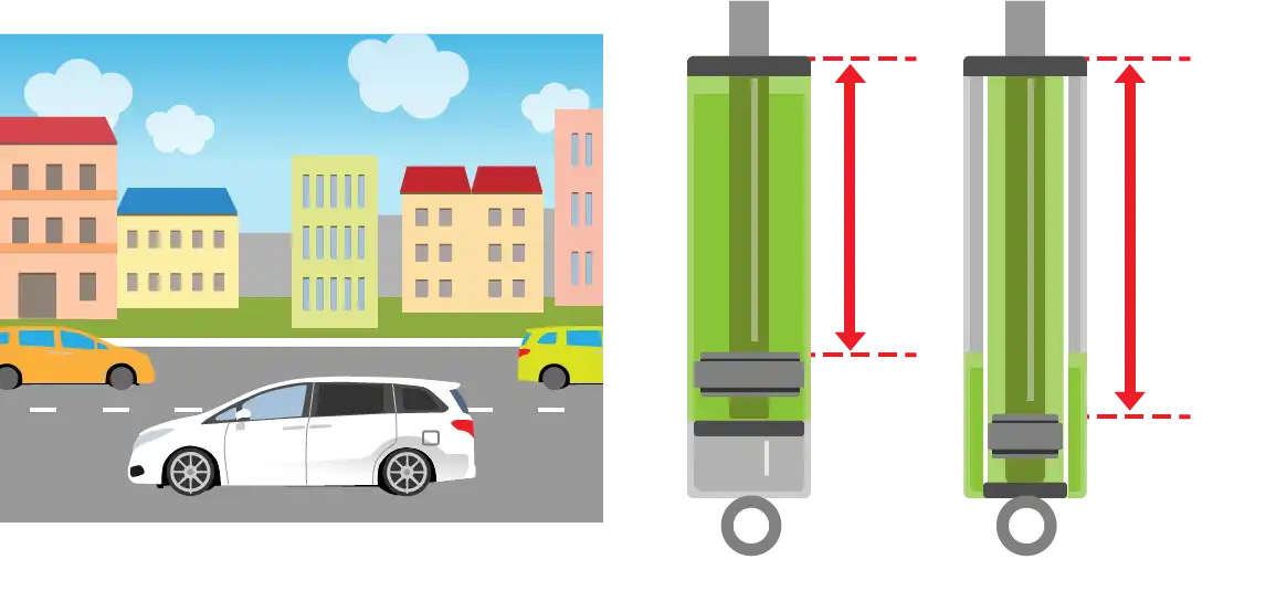 Roads may have all sorts of surface conditions. This calls for shock absorbers with ample stroke, that operate smoothly.