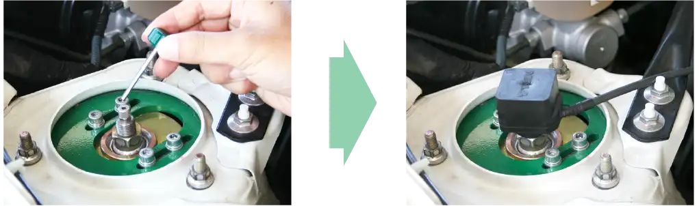 Lower brackets on strut type suspensions come with camber angle adjustment feature. Camber angle can be adjusted by rotating the eccentric washer 180°. This feature can enable camber angle adjustment, even if it can not be adjusted with the upper mounts.