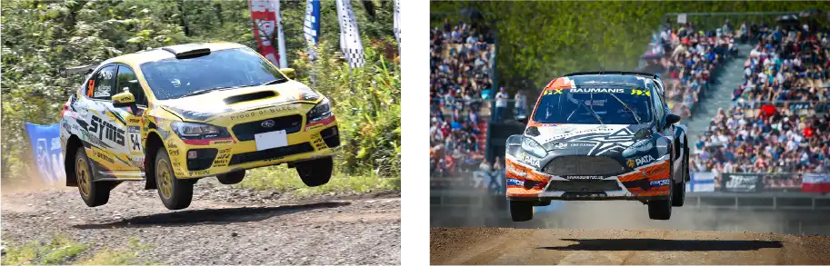 Swiftly absorbing the impact of big jumps, H.B.S. effects a steady vehicle.