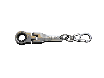 Small yet heavy-bodied miniature tool keychain in classic silver with mirror finish. Ratchet tool actually works on hex bolts & nuts with 10mm width across flats.