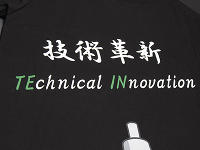 T-shirt with the words "TEchnical INnovation", of which the company name TEIN came from, printed on back.