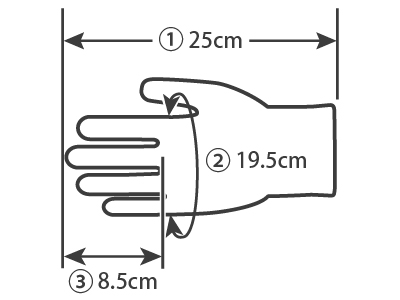 | Size | Hand Length : 25cm Palm Girth : 19.5cm Middle Finger Length : 8.5cm *For reference only. |