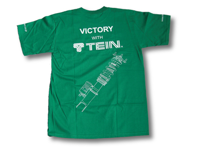 T-Shirt in TEIN Green is now available!! “VICTORY WITH TEIN” and a drawing of SUPER RACING Damper are on the back.