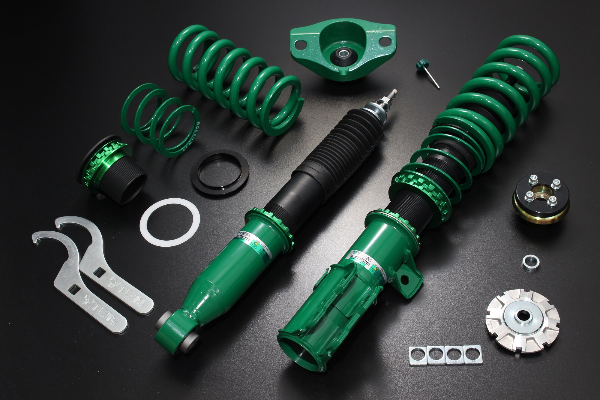A bright TEIN-green powder paint is used on the shock absorber's shell case. Our powder coating technique produces an extremely strong and durable barrier. No harmful organic solvents are used, for minimal pollution.