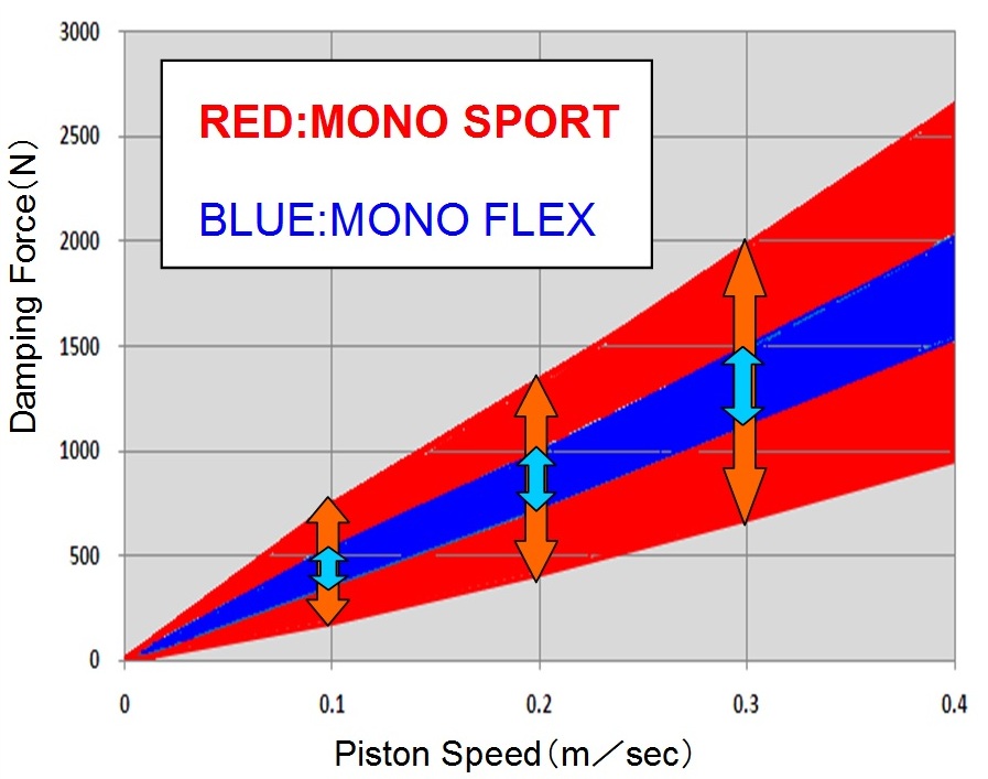 Mono tube structure of MONO SPORT completely separates the oil chamber and the gas chamber and hence aeration does not occur. This enables stable generation of linear damping force, reacting to the finest changes in road surfaces, even when running aggressively and repeatedly on circuits. With this, superior-quality MONO SPORT offers capability for the most delicate control of the vehicle and for the deepest level of communication with the roads.