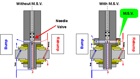 M.S.V. system generates damping force at the separate valve placed at the bypass flowing through the needle valve. |