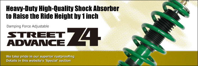 STREET ADVANCE Z4 is designed and configured to be most suitable for the lifted height. Simply raising the standard height can lead to insufficient rebound stroke impairing the stability and also make the camber angle positive on strut suspensions.