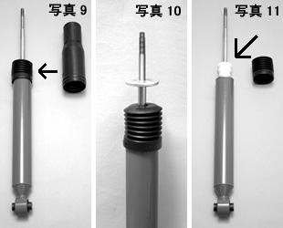 中にはテイン製ダストブーツが短いために、良かれと思って純正のダストブーツを上からかぶせるケースもあるようですが、テイン製ダストブーツは車両を地面に下ろした状態において適切に機能する長さとなっておりますので【写真10】、装着時に長さが足りないように思えても、機能上は全く問題ございません。 またテイン製ダストブーツの中にはバンプラバーが装着されていますが【写真11】、隠れているために装着されていないと思い、ダストブーツの上から適当なバンプラバーを追加してしまう事例も報告されています。この場合余計にバンプラバーが入っているのでバンプストロークが極端に不足し、常に突き上げ感のある乗り心地が悪い状態に陥ります。