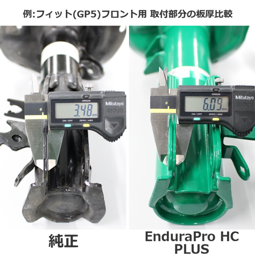 EnduraPro HC PLUSは、車高アップのため純正ショックアブソーバの寸法をベースにスプリングシート位置を変更することで、20㎜アップを実現しています。