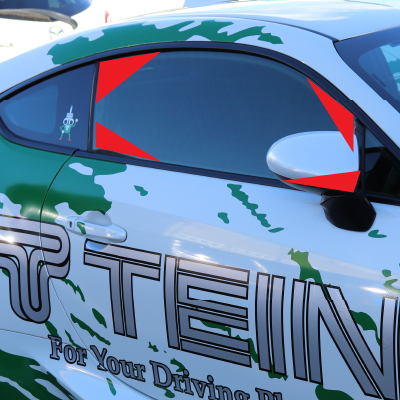 2.サイドガラスの四隅に近いところにハンマーを押し当てる。