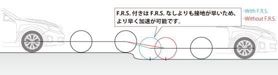 F.R.S.スイッチの作動荷重はベルビルワッシャー(皿バネ)によって設定され、タイヤ荷重が0になる前から積極的にF.R.S.が作動しより優れたトラクションを発揮します。またベルビルワッシャーの組み合わせによって作動荷重設定が変更可能であり、セッティング変更が可能となっています。