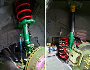 ドレスアップや若干のハンドリング向上を考え、Autoexe製ダウンスプリングを組み込んでいました、その後、車高調へ変更。当製品に交換し、まず第一印象は嫌らしい低速時のゴツゴツした突き上げが感じられず、角のとれたジェントルな突き上げになったこと。かといってユラユラ、フラフラとロールが出るかといえば、そこは巧く抑え込まれ、非常に乗り心地が良いとの印象です。 街乗りから、少しスポーツ走行する乗り方なら”アリ”かなといった製品。インプレが完了したら、また車高調へ戻そうかと考えていましたが、この乗り心地なら、当分現状でカーライフを堪能しようかなと、考えを改めさせるほどの良さをもった製品だと思いました。 |