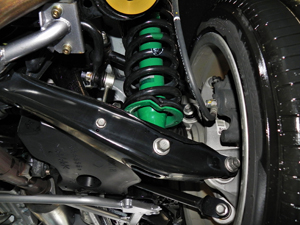 ○街中での乗り心地 純正ショックのSport-MODEに比べて感覚的には1.5倍程度(Fr;最強から3段目、Rr;最強から1段目)だが、クラウンの上質でスムーズな走りは壊していない。一般道路を40~60km/h程度で走ると、小さな段差・橋脚の継ぎ目を越える際の振動や衝撃は純正に比べて少しマイルド。ロールは抑制され、その後の納まりは早い。