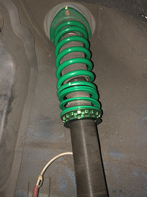 今回はバネを10k8kに交換してヘルパースプリングでパンプストロークの調整をして、しなやかに動き、踏ん張りの効く足をイメージして、セッテングしました。 パンプストロークはパンプタッチまで14ミリに前後セットしました。キャンバーはフロント2.5度リヤ1.7度です。結構乗り心地も悪くなく、大きなピッチングが少ないフラットな感覚が得られました。ノーズダイブが減った感じですかね。ヘルパーのおかげもあって、しなやかです。 減衰は8段以下は使えません。スポーツ走行時は4段から締め切りまでです。次回はモノレーシングの購入を検討しています。それまではこの仕様で練習です。 |