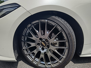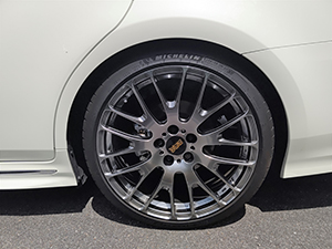 初めての車高調です。前後10㎜ダウン、減衰力は中間と、大人し目で設定しました。