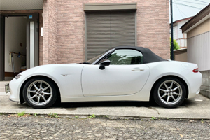 車高調を着けると乗り心地が悪くなると言われてましたが、ロードスターは純正が元々硬めなので、あまり気になりません。それよりも思ったよりもタイヤが内側に入るなぁと言う印象です。純正ホイール使用です。