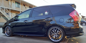 フロント/リアとも、40mmダウンにて取付してもらいました。突き上げもノーマルと変わりなく、H.B.S.効果は歴然でした。減衰は推奨の8で乗っています。