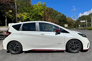 ノーマルサスのフロントは拳が入るほど車高が高く不満でしたが、ニスモ専用パーツのトンネルステーを基準に車検も通せる車高に調整しました。