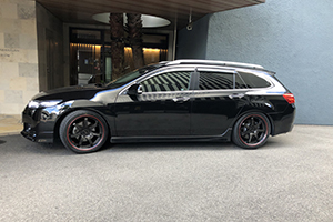 推奨値(25mmダウン)で取り付け。カーブやレーンチェンジの安定性向上と乗り心地が両立できいい感じです。