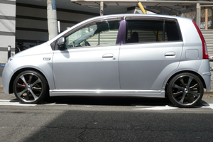 専用がなくムーブ用です! 基本プラットホームは同じなので取り付けました! 扁平タイヤですがノーマルより乗り心地UP^^ R全下げでF調整していますが9センチ以上あいてますので 検査の心配もありません^^