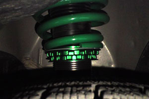 ○スタイリングについて かみさんも運転するということで、今回車高は5cm下げました。 5cmを下げたたけでも、明らかに全体の見た目が変わりました。 特に横からの見た目が! ホイールは純正の15インチ(今は同サイズのスタッドレス)を 履いていますが、フェンダーとタイヤの隙間がかなり狭くなり、 とても格好良くなりました。 今までは、こぶしを縦にしたくらいの隙間が開いてましたが、 車高調取り付け後は、こぶしを横にしても隙間に入らないくらい狭くなり、 次はアルミの18インチくらいが欲しくなります。 C26のSなんですが、Sじゃないみたいにスタイリッシュになり、 かなり満足度大です。 Sで車高調を入れている人はあまりいないと思いますので、 差別化が出来たと思います。 ちなみに分かりにくいですが、 写真はフロントの隙間から見える車高調です。