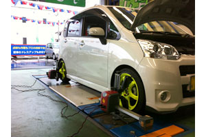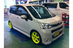 今回ステラRSに、レイズ16インチを履かせたら、フェンダーとタイヤのギャップが酷くなり、そのためにTEINの車高調を入れました。ただし、スバルステラLA100F用が無かったため、ムーブ用の車高調を使用しました。 まず、足回りのナラシを500キロ走行し、車高とアライメントを修正しセッティングを繰り返しました。最終的には16段調整をF-5 R-3に決めました。 街乗りじゃ道が悪いためにバンピーになりやすく、高速走行では安定出来なく、ソフトなセッティングになりました。 乗り心地は良くバランスが取れている足になりました。 |