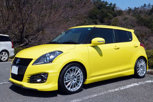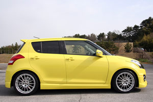 ■ スタイリング スイフトスポーツZC32Sは純正のサスキットでは、乗り心地を考慮してか、ダンパーストロークが大きく取ってある為、車高がスポーツタイプにしては高めである。分かりやすく例えるなら、ホイルハウスとタイヤとのスキが、握りこぶし一つ分ぐらい楽に入る程のスキがある。 STREET ADVANCE を取り付ける事により、車高が程よく下げられ、指一本半ぐらいのスキとなり(推奨車高値)、精悍なスタイリングが得られる。またアルミ、タイヤとも変えてあれば尚更、サイドビューが引き締まり、迫力のあるスタイリングになるかと思います。 STREET ADVANCE の車高推奨値はF-35mm R-30mm これはスタイリング、乗り心地等を考慮された数値で、とてもバランスがいいかと。 車高の下がり具合は、純正よりかなり下がっているが、フェンダーが被るようなベタベタな落ち具合ではなく、さり気ない落ち具合で、新型スイフトスポーツの車格とマッチして、ヨーロッパ車みたいな上品な感じで好感が持てる。