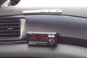 EDFC ACTIVE PRO 〔コントローラーのサイズ、取付場所について〕 コントローラー取付けの際、作業をお願いしたショップ様から「EDFC ACTIVE PRO」のコントローラーは、内部にGセンサーが組み込まれているため、なるべく垂直な平面に固定する必要があるとのことでしたので、垂直面の少ない私の車両では、助手席側のインパネに両面テープで固定することにしました。 この位置だと、走行中は手が届かないので、操作は停車時に行うまたはナビゲーターにお願いすることになります。 しかしながら、「EDFC ACTIVE PRO」の場合、3軸加速度センサーが搭載されており、設置面が傾いていても大丈夫で、センサーをリセットすることにより正確な動作をするようになっておりました。 この辺りは垂直面が少ない車両のオーナーさんには嬉しい対応かと思います。取付作業を実施されるショップ様でもご存知ない場合もあるようですので、是非アピールをしておきたいと思います。 配線に関しては、コントローラーと減衰力調整用のドライバーユニットの間が無線化され、設置作業が簡素化されるように配慮されています。無線となるとレスポンスが心配になりますが、コントローラーから指示が出てモーターが動作するまでの間にタイムラグは感じません。素晴らしいです。