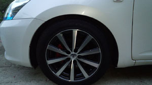 初めての車高調だったので、エントリーモデルということで選びました。F50㎜ R40㎜にしました。タイヤとフェンダーの隙間からかすかに見える緑色がカッコいいです!乗り心地は純正より良くなったと思います!?ゴツゴツ感が減った感じです!