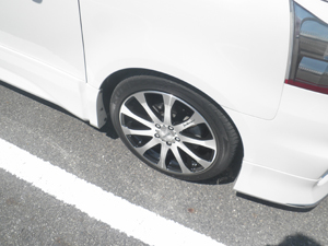 車高調は初めてですが、非常に乗り心地いいですね。純正からのダウン量は不明ですが、フェンダーとタイヤの隙間は前後共に指1.5本程度です。減衰力調整は10段階で設定しています。それ以上だとふわふわし過ぎます。